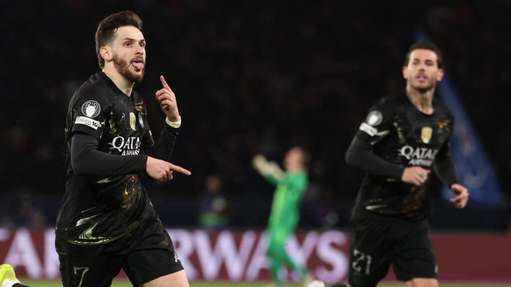 86分、途中出場のフヴィチャ・クヴァラツヘリアが圧巻のゴールを決め、PSGが4-2とリードを広げる。カーブを描く見事なシュートはスタジアムを大きく沸かせた。